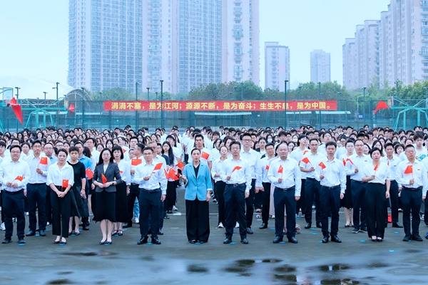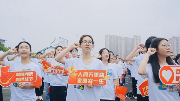 “今天是你的生日,我的中国……”“我和我的祖国,一刻也不能分割……”在悠扬的小号声中,在同学们深情的歌声中,600余名师生相聚长兴广场,共同庆祝这一光辉时刻。